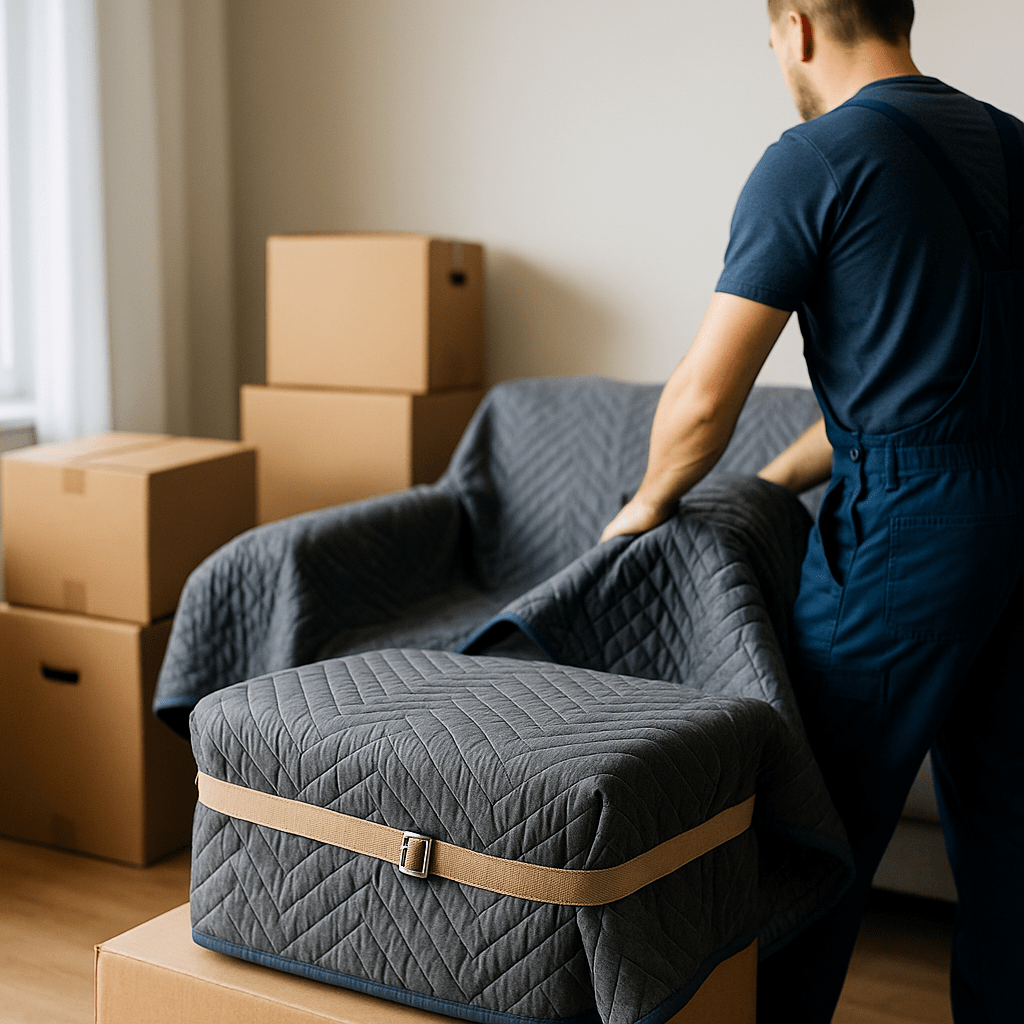 - Les déménageurs enveloppent chaque meuble d’une couverture épaisse adaptée.
